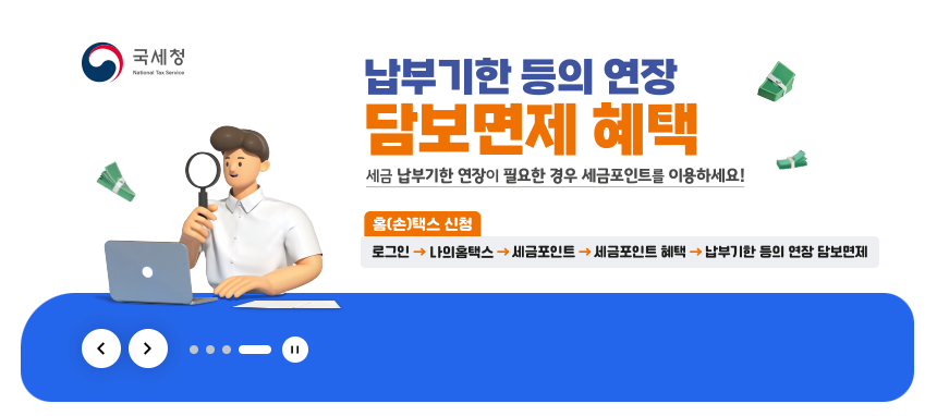 - 일정 금액 이하의 세금에 대해 담보 제공 없이 납부 유예 가능
