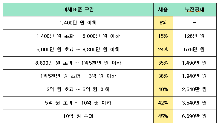 2025년 종합소득세율과 과세표준표 공개