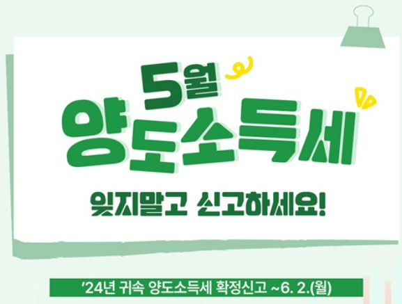 양도소득세는 개인이 부동산, 주식, 기타 재산을 양도(팔거나 교환)함으로써 발생한 이익에 대해 부과되는 세금입니다. 양도한 납세자라면 해당 기간 안에 세금 신고를 하셔야 합니다.