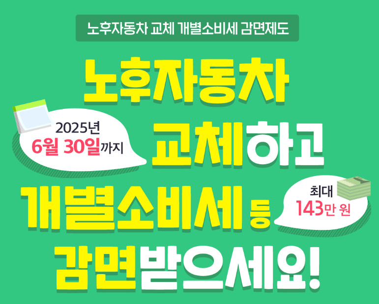이 기회를 놓치지 말고, 2025년 6월 30일 전까지 개별소비세 감면 혜택을 꼭 챙기시기 바랍니다.