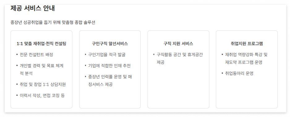- 취업 알선 및 일자리 정보 제공
