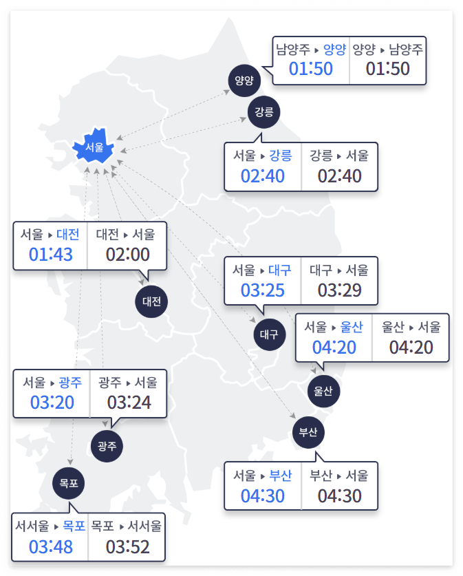 특히 명절 연휴나 주말에는 출발 시간에 따라 소요시간이 몇 시간씩 달라질 수 있습니다.