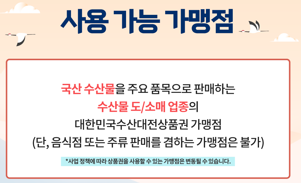 - 국산 수산물 구매 시 사용 가능