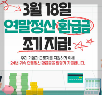 특히 회사가 부도나 폐업 상태라 환급금을 받기 어려운 근로자는 3월 24일까지 홈택스 또는 관할 세무서에 신청하면 검토 후 3월 31일까지 환급금이 지급됩니다.