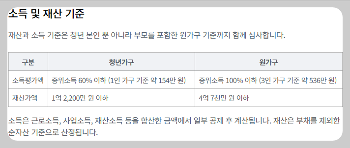 청년 월세 지원에서 가장 중요한 부분은 바로 소득 기준입니다.