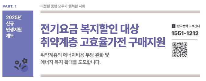 2025년 기준 고효율가전 구매지원 사업은 전기요금 복지할인을 받고 있는 취약계층을 대상으로 합니다.